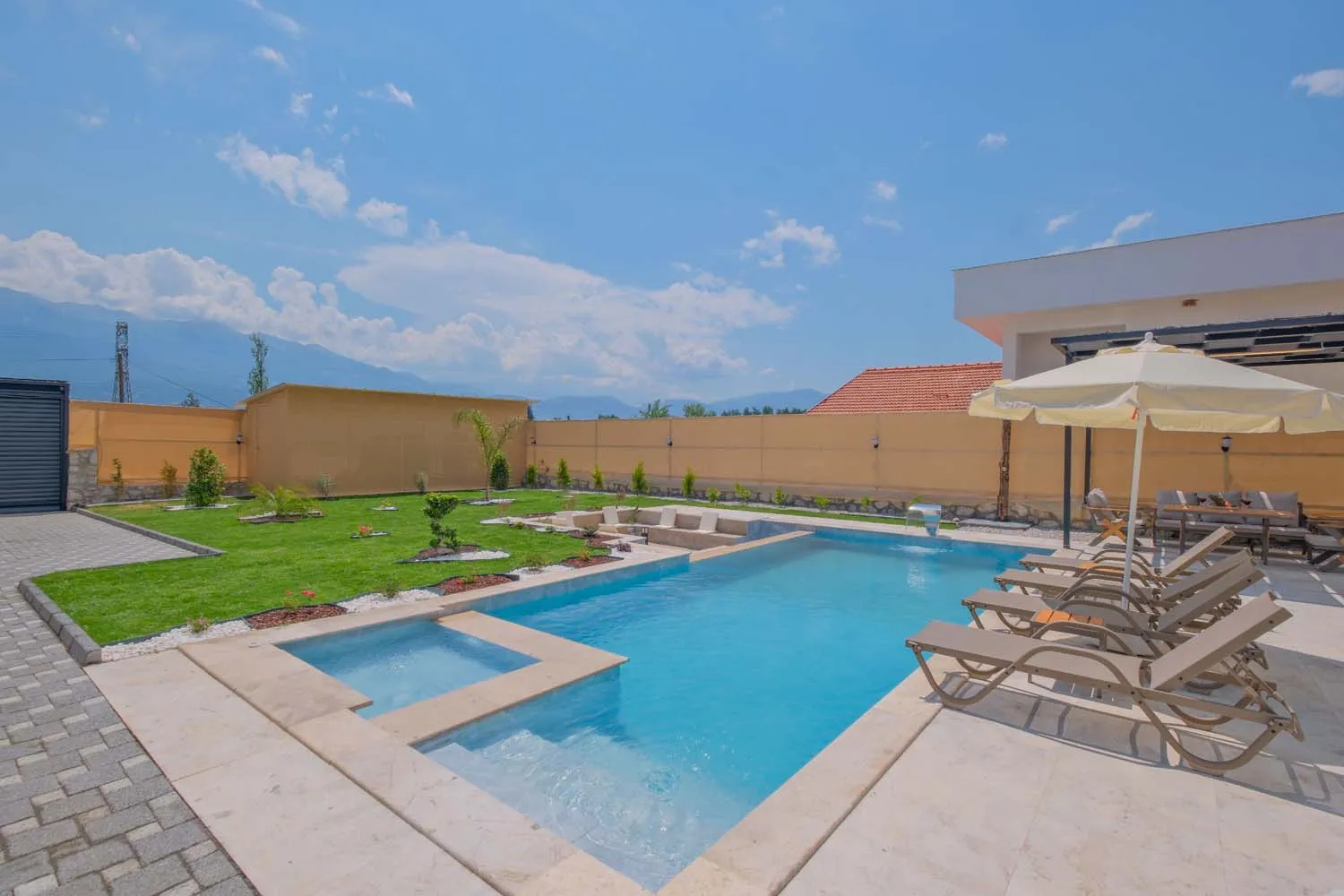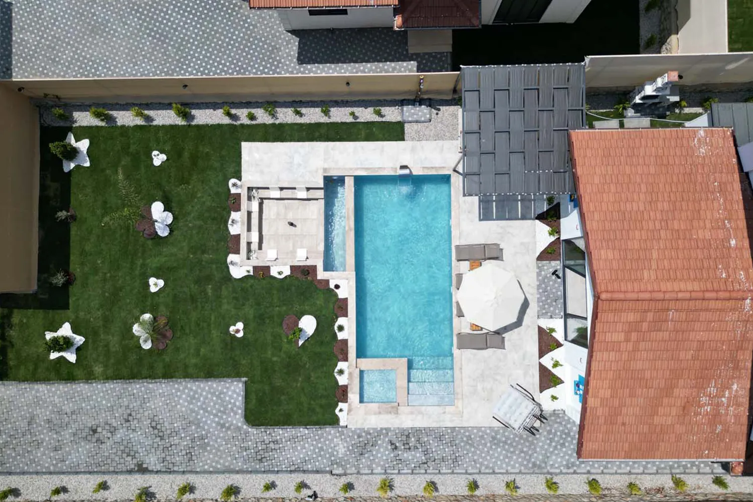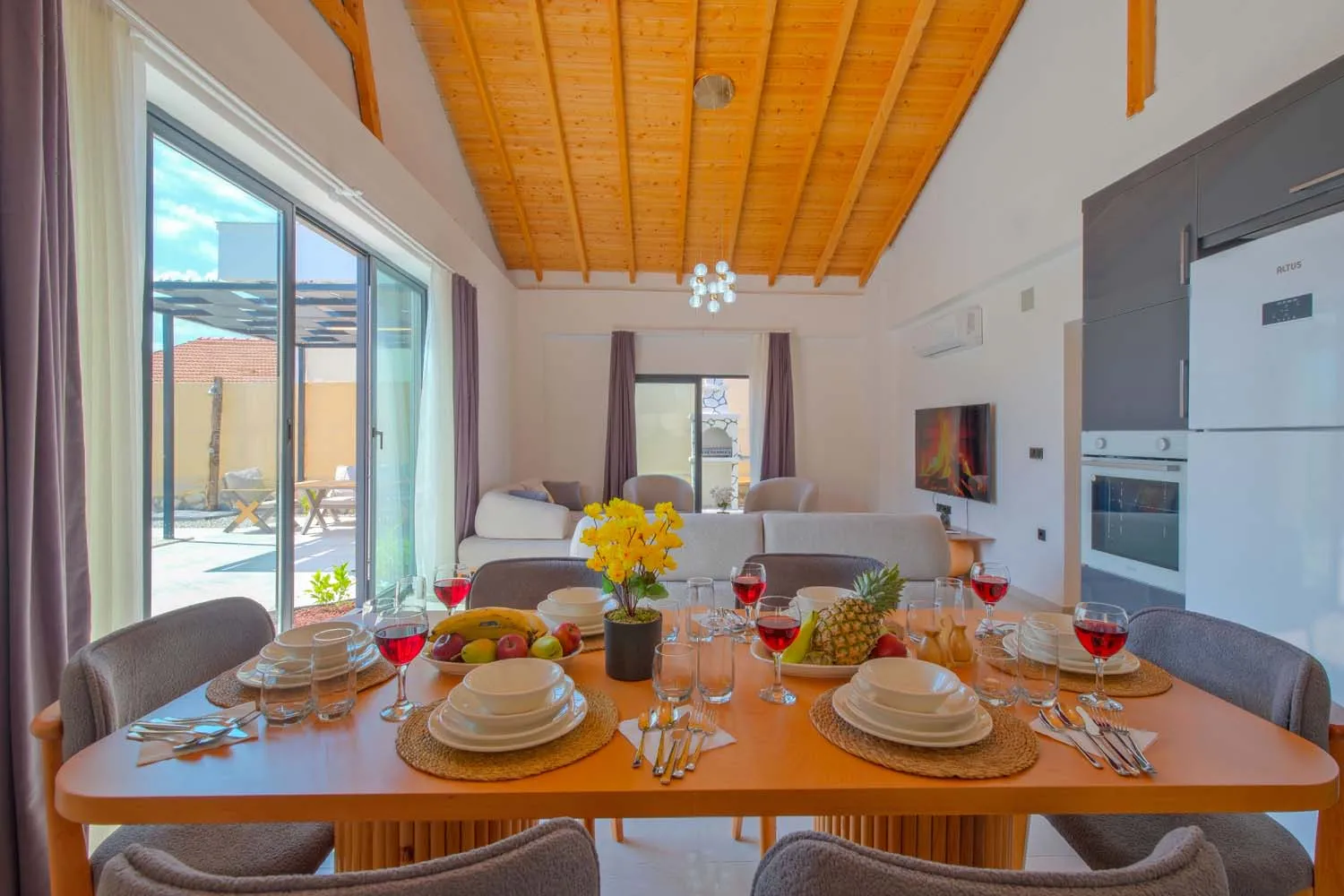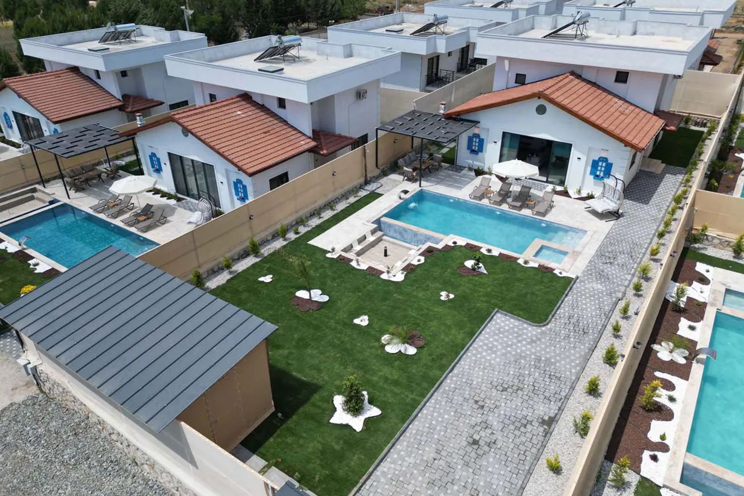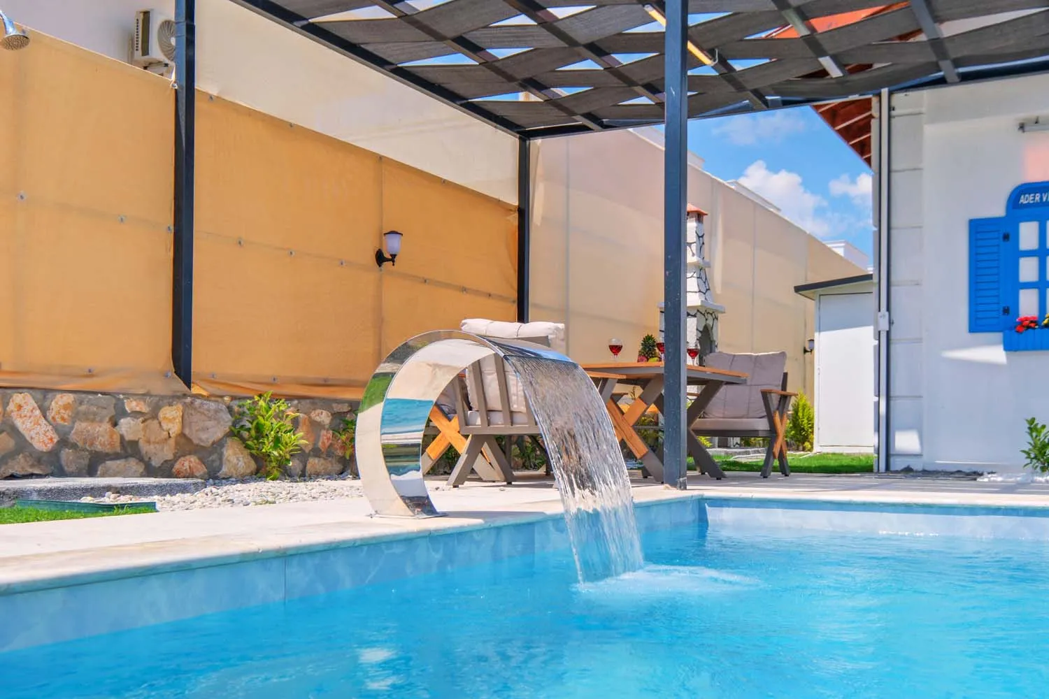 Dış mekanda; oturma alanları, şezlonglar, havuz içi jakuzi, ateş çukuru ve barbekü alanı bulunurken, iç mekanda ise havuz terasına açılan konforlu oturma odası ve tam donanımlı mutfak yer almaktadır.