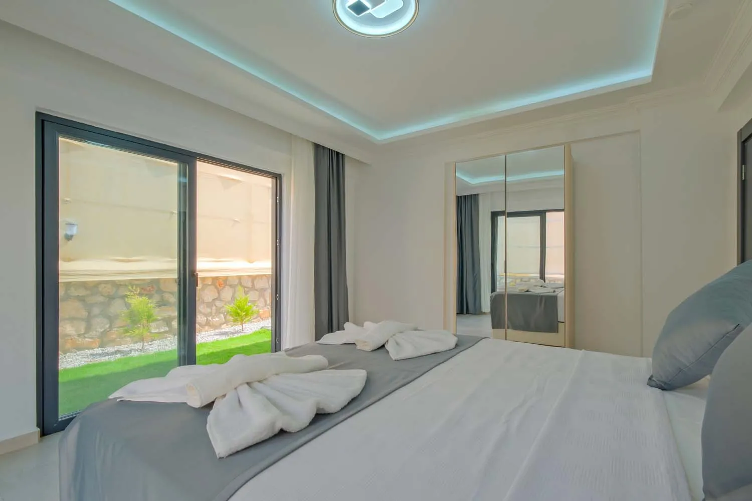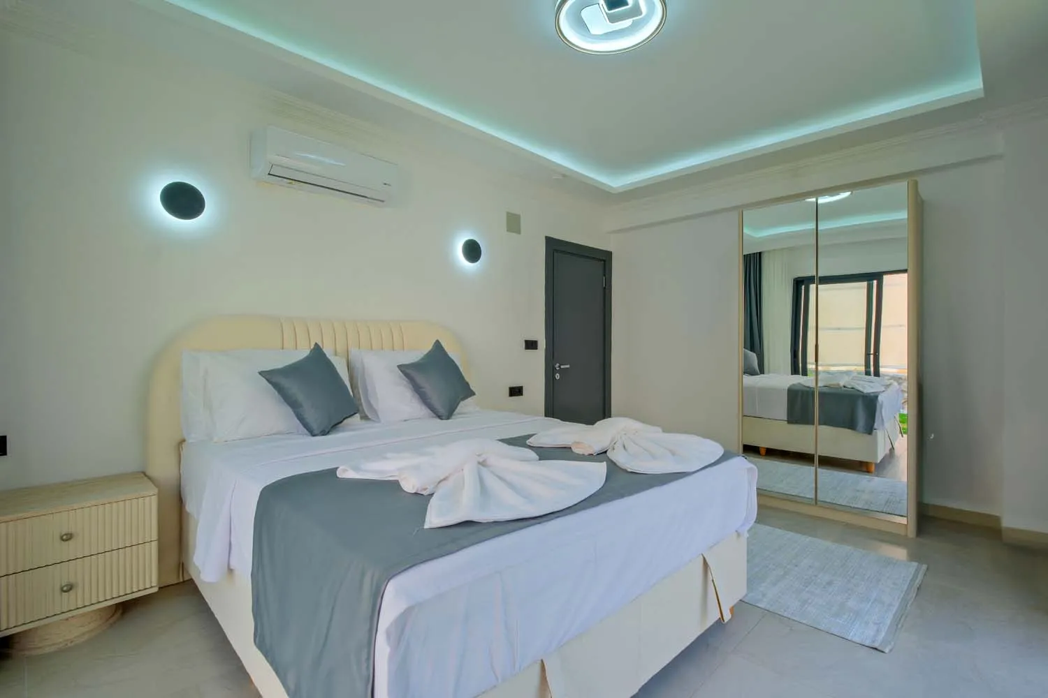 • Birinci yatak odası: Çift kişilik yatak ve ebeveyn banyosu