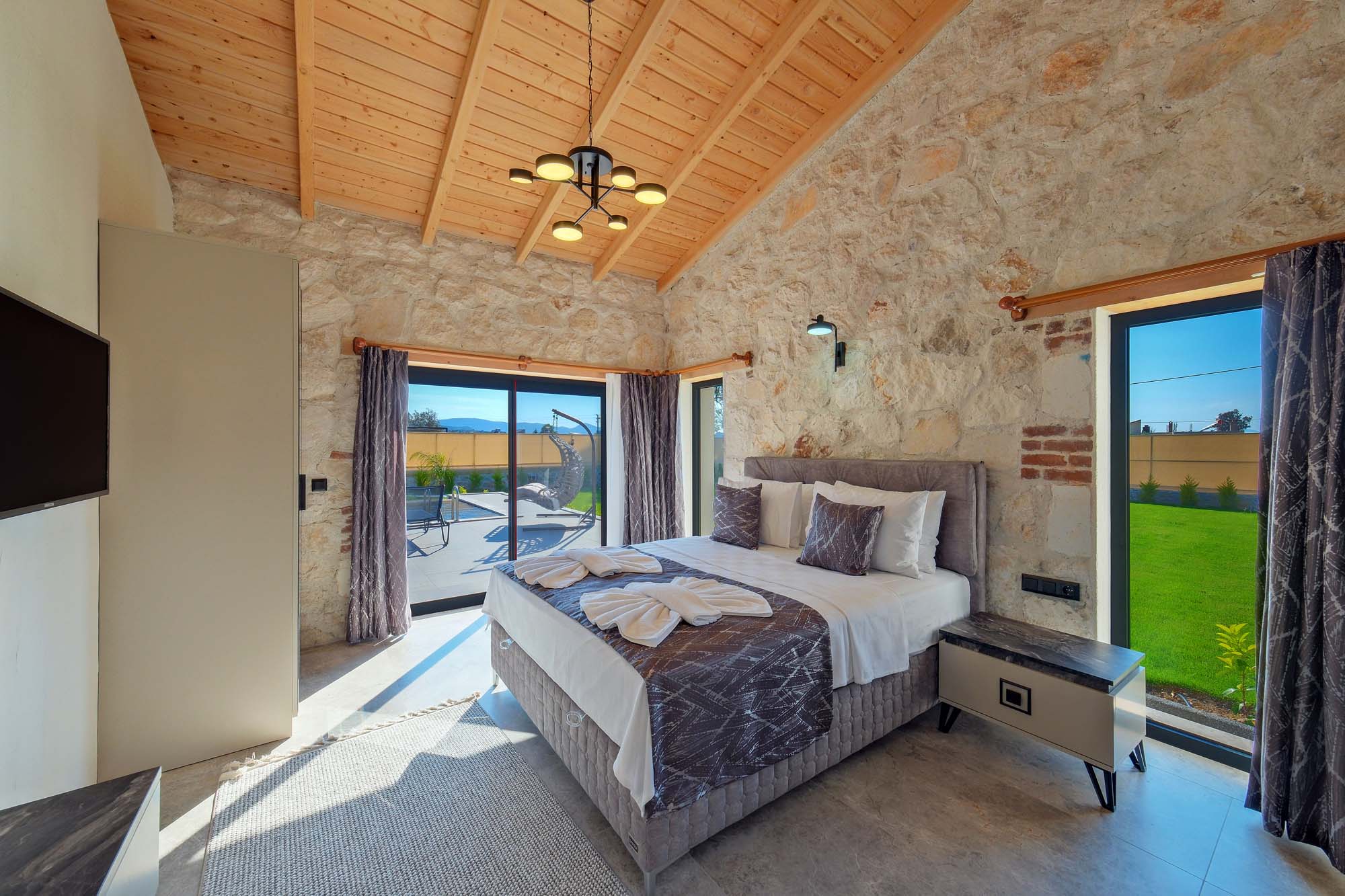 2. Yatak odası : Çift kişilik yatak, televizyon, elbise dolabı, komodin ve ebevyn banyosu