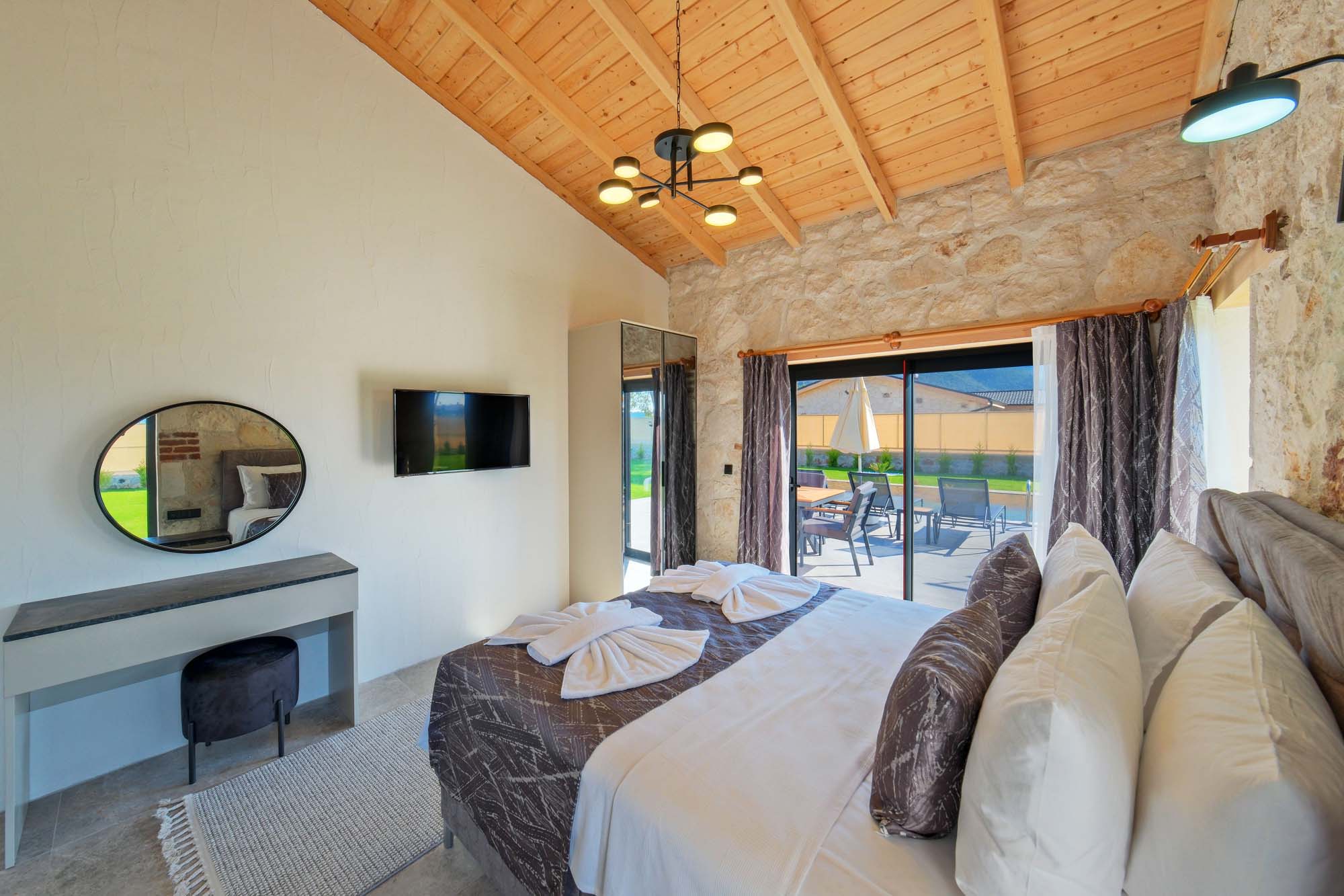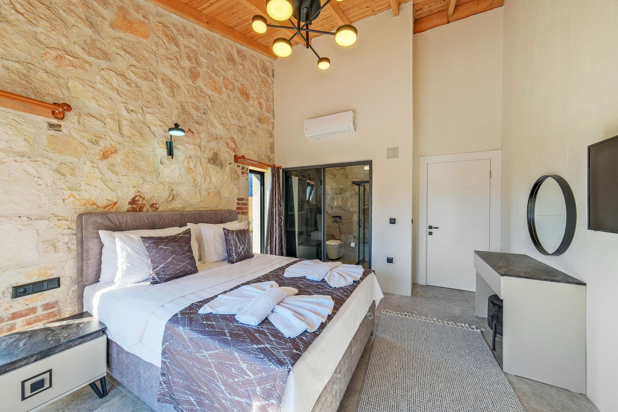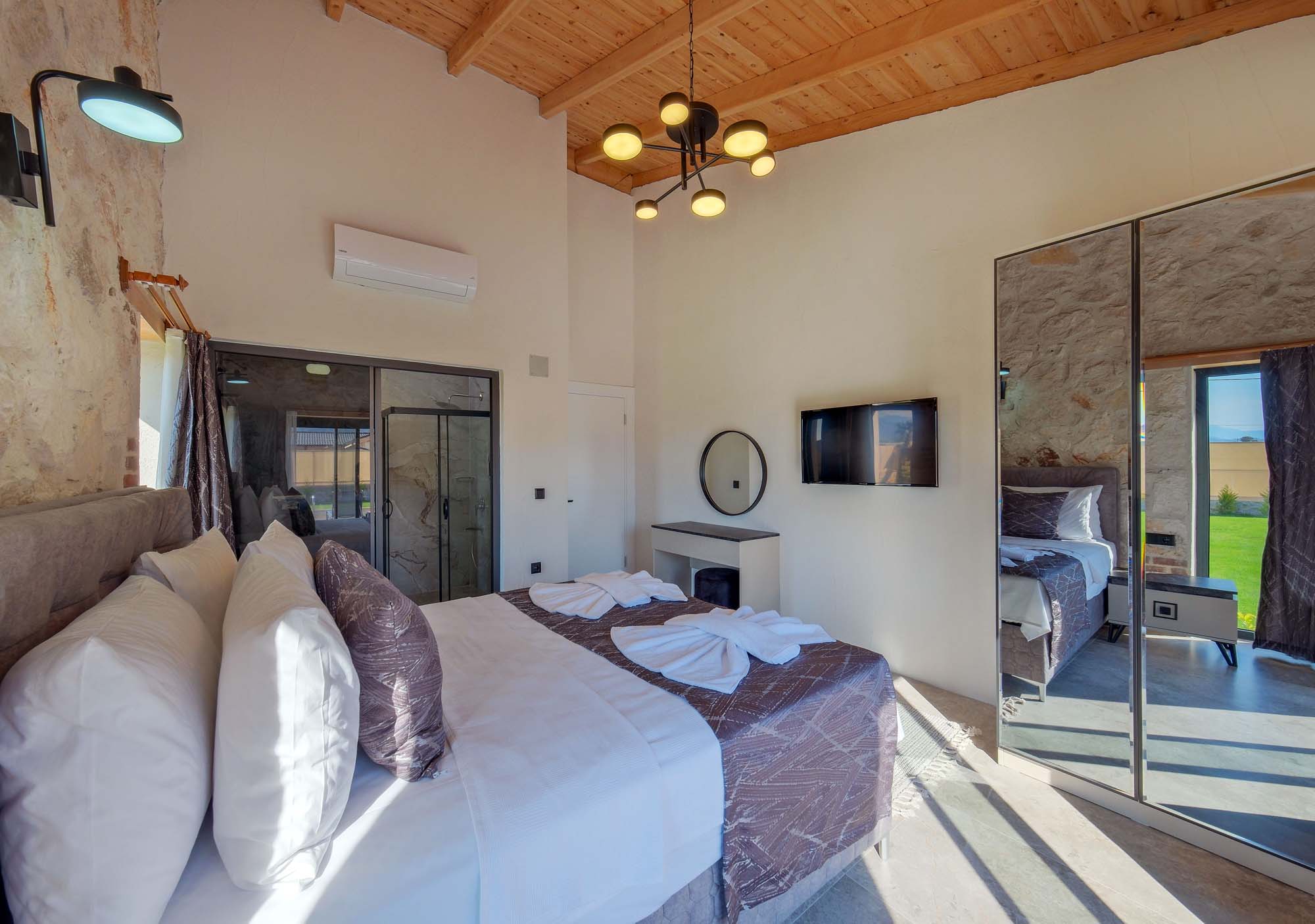 1. Yatak odası : Çift kişilik yatak, televizyon, jakuzi, elbise dolabı, komodin ve ebevyn banyosu mevcuttur.